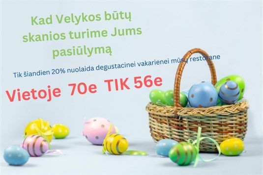 Taip pat visų klientų megstamas pasirinkimas -10 patiekalų degustacinė vakarienė,tai ryškiausias šios vietos akcentas, atskleidžiantis ne tik paties restorano filosofiją bei požiūrį į maistą. Šis nuotykis taip pat suteikia galimybę pažinti išraiškingiausius Lietuvos skonius, atsiskleidžiančius kūrybingame, provokuojančiame ir visada maloniai nustebinančiame amplua. Mėgautis degustacija svečiai kviečiami tiek prie atviros virtuvės Šefo stalo, tiek pagrindinėje restorano salėje.